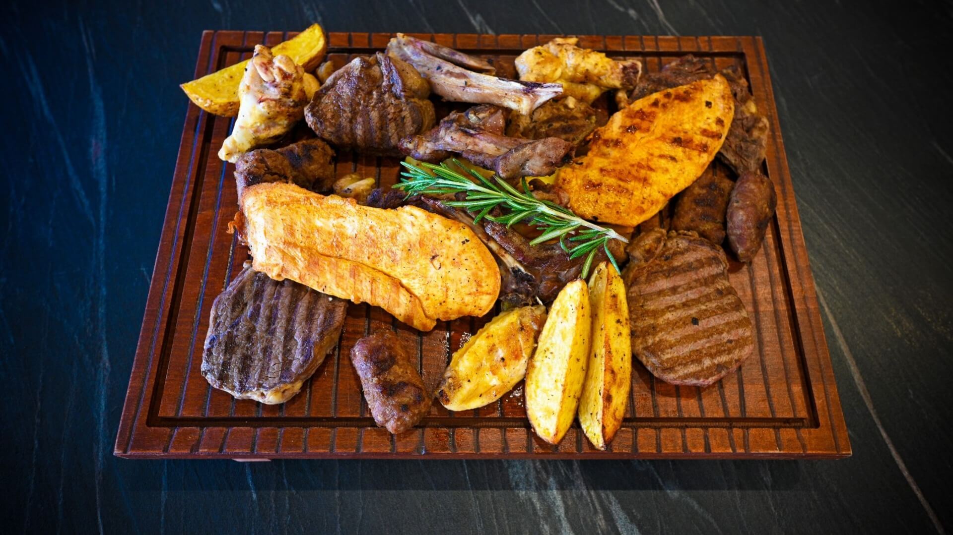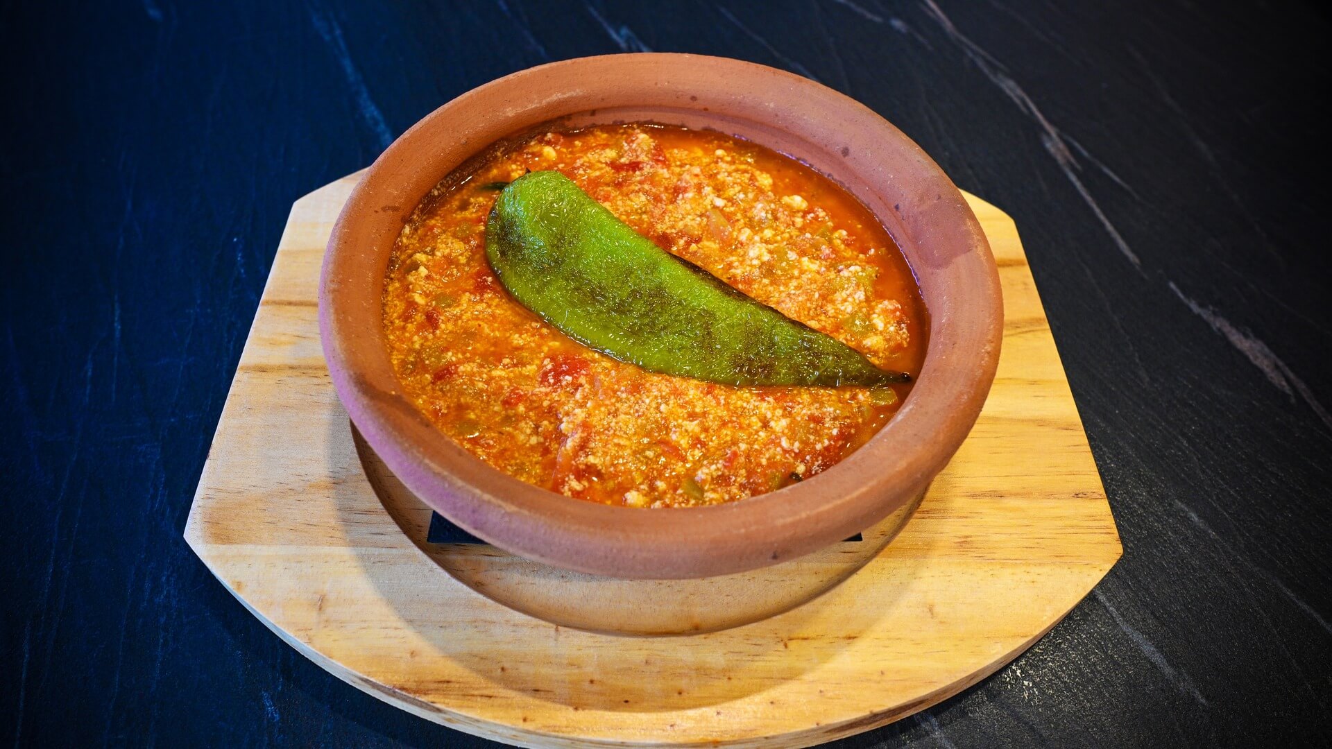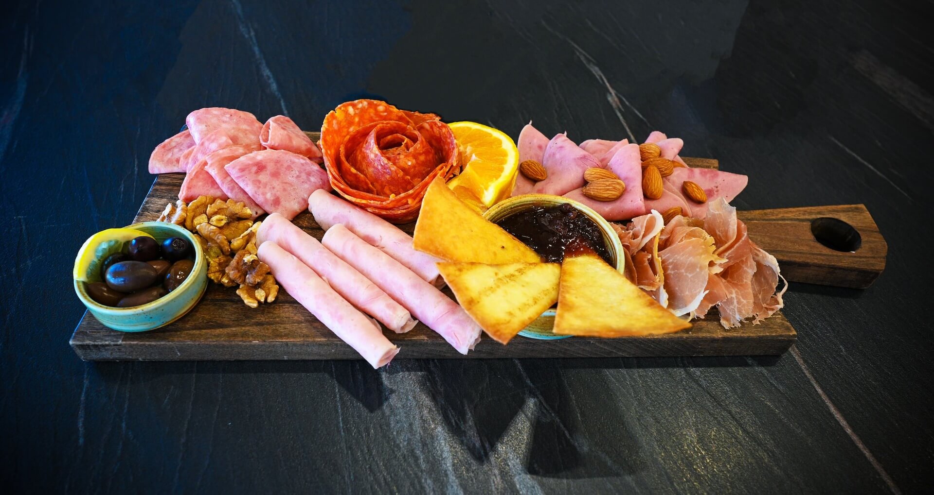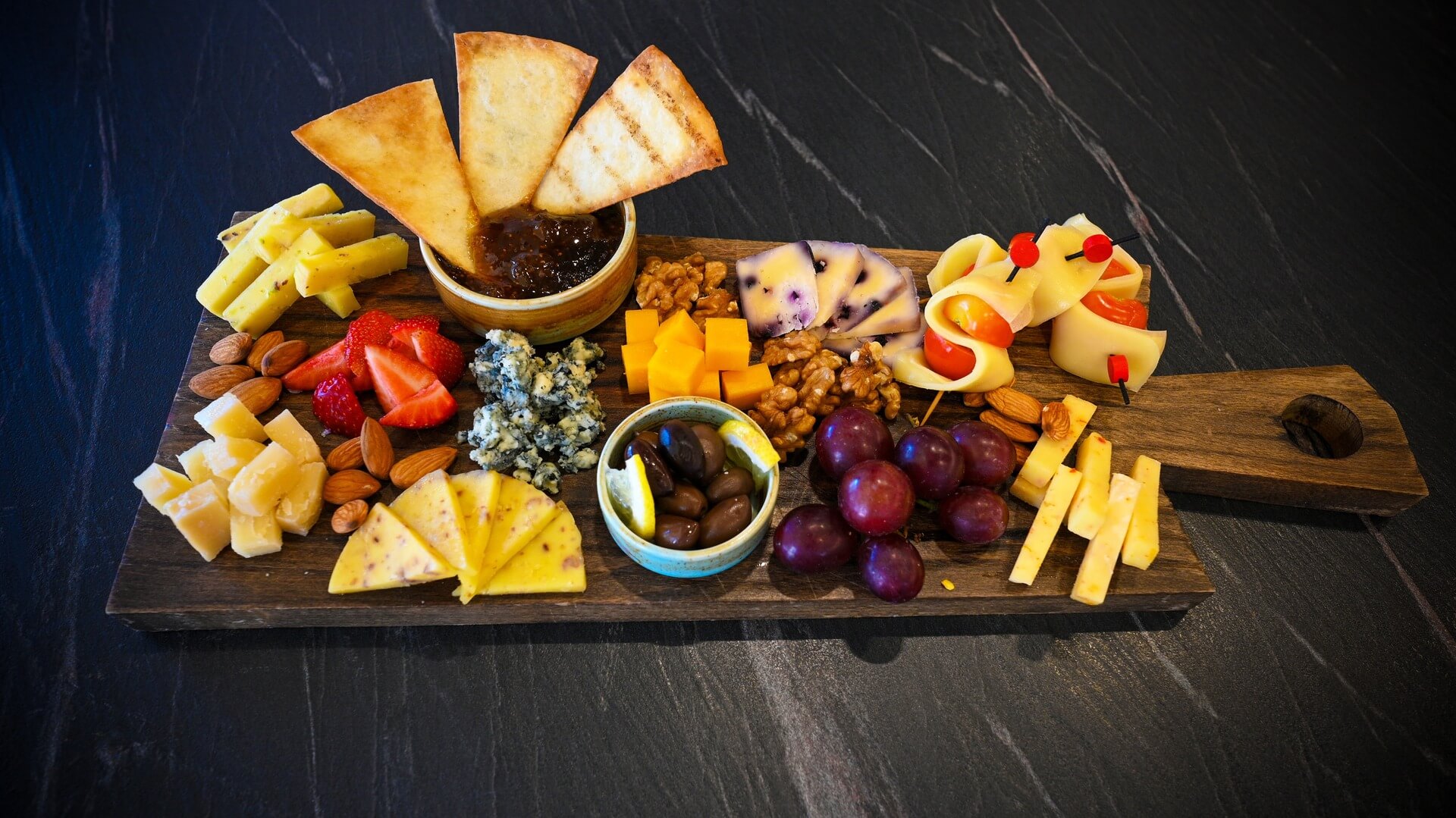 Cheese, olive, jam, butter, tahini, grape molasses, honey, sausage, ham, french fries, eggs (options: fried egg, omelette, menemen)