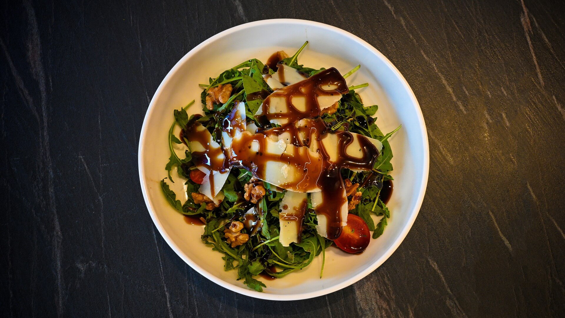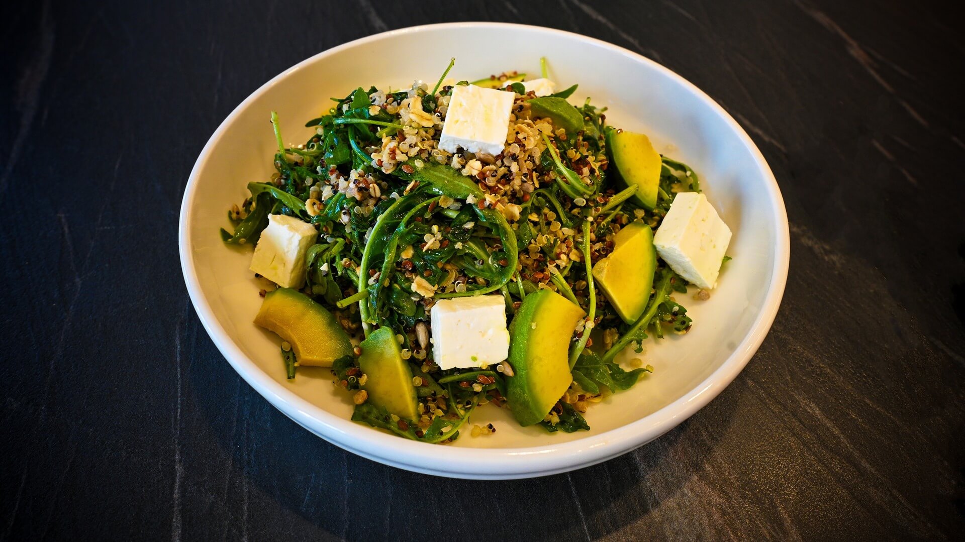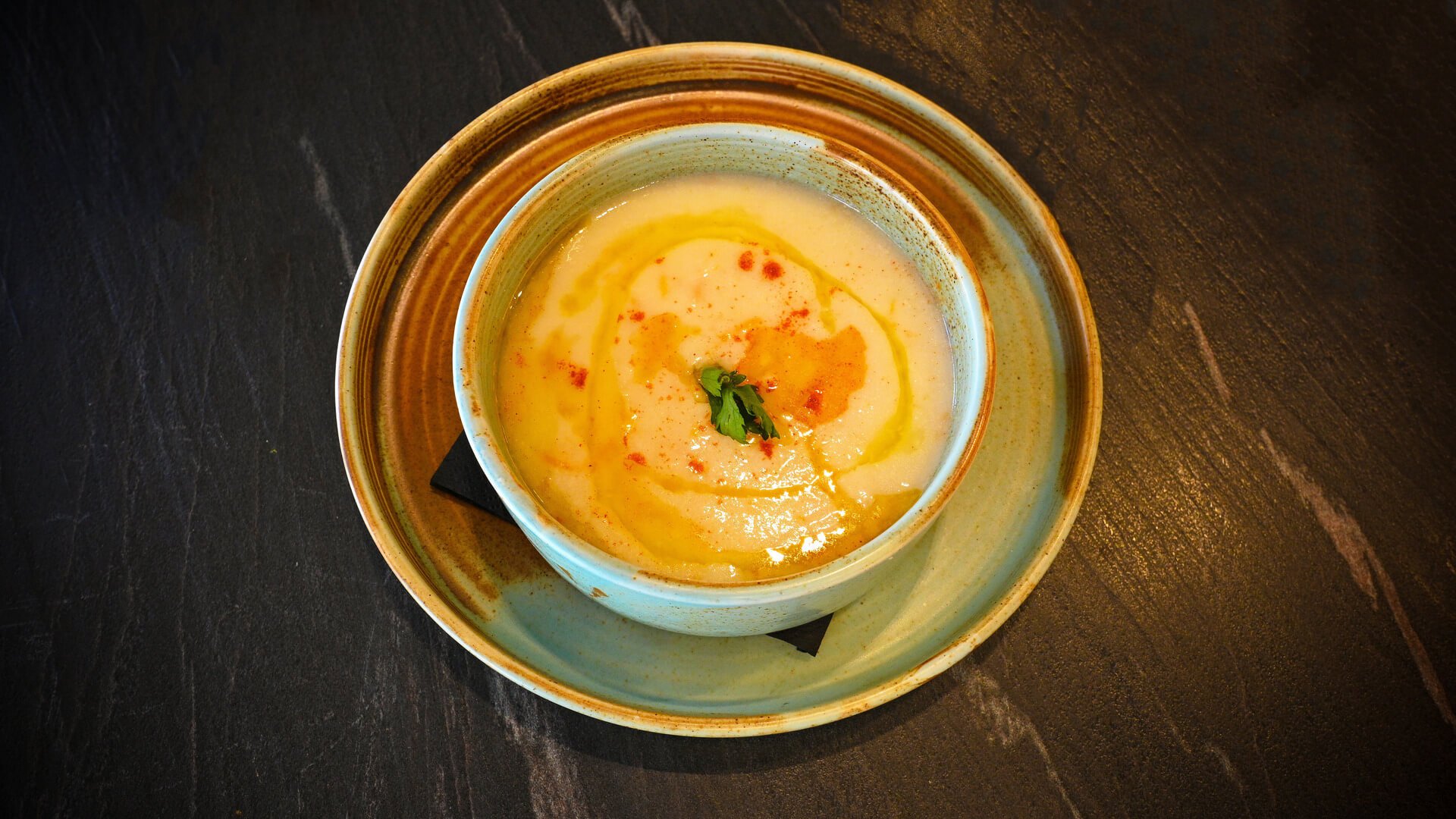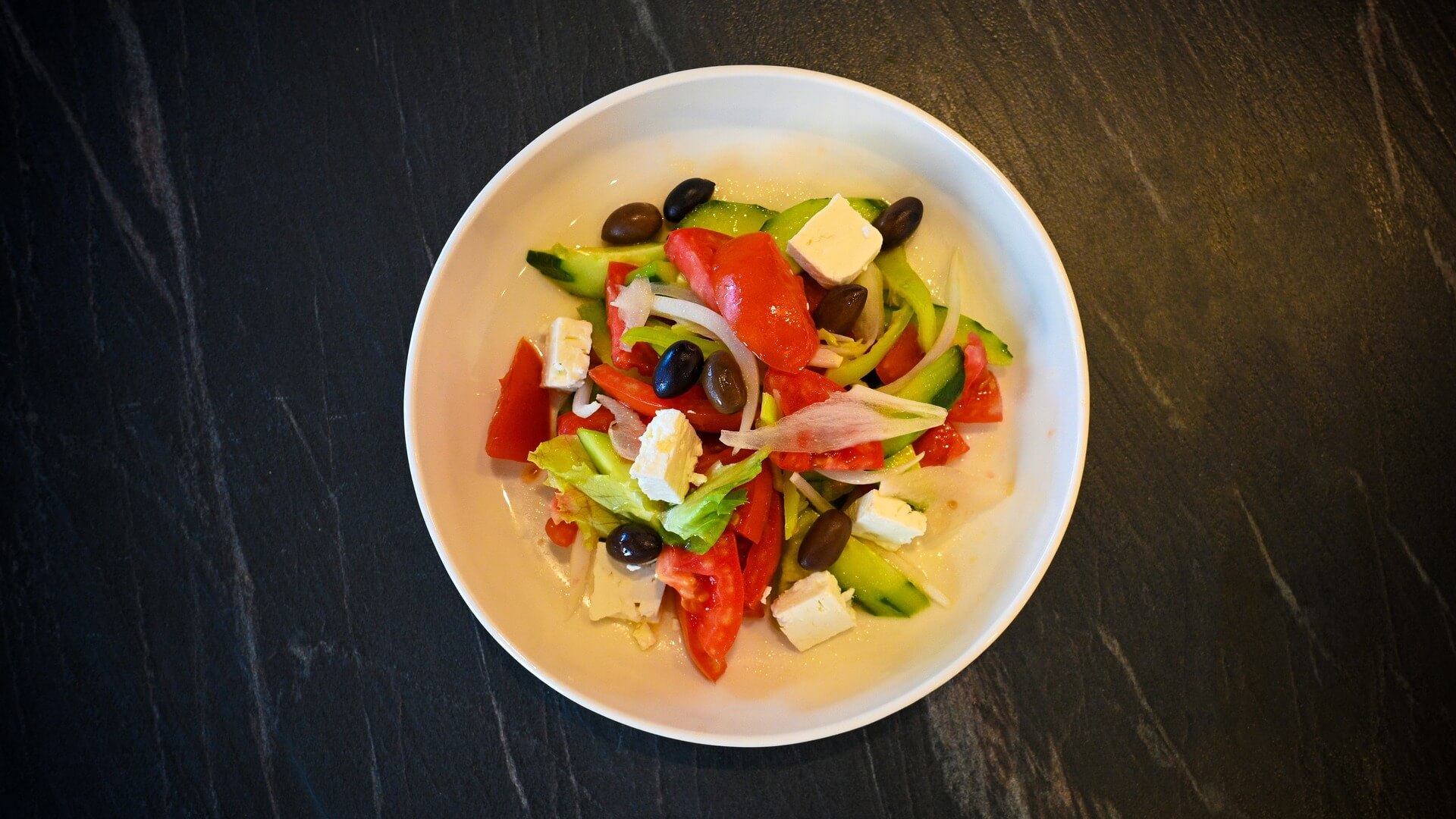 Savor a crisp garden salad paired with a bowl of hearty vegetable soup.