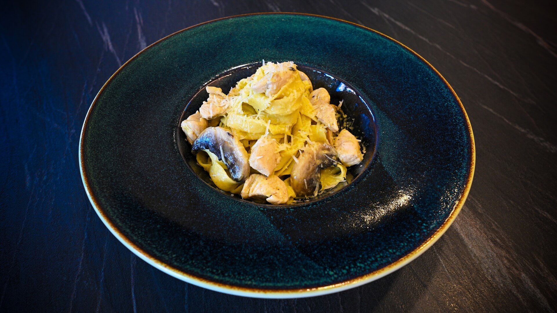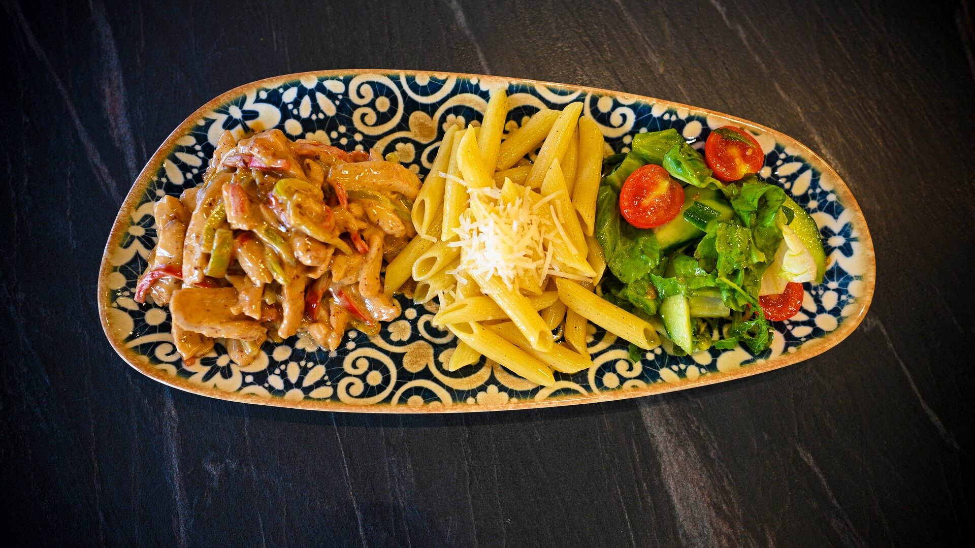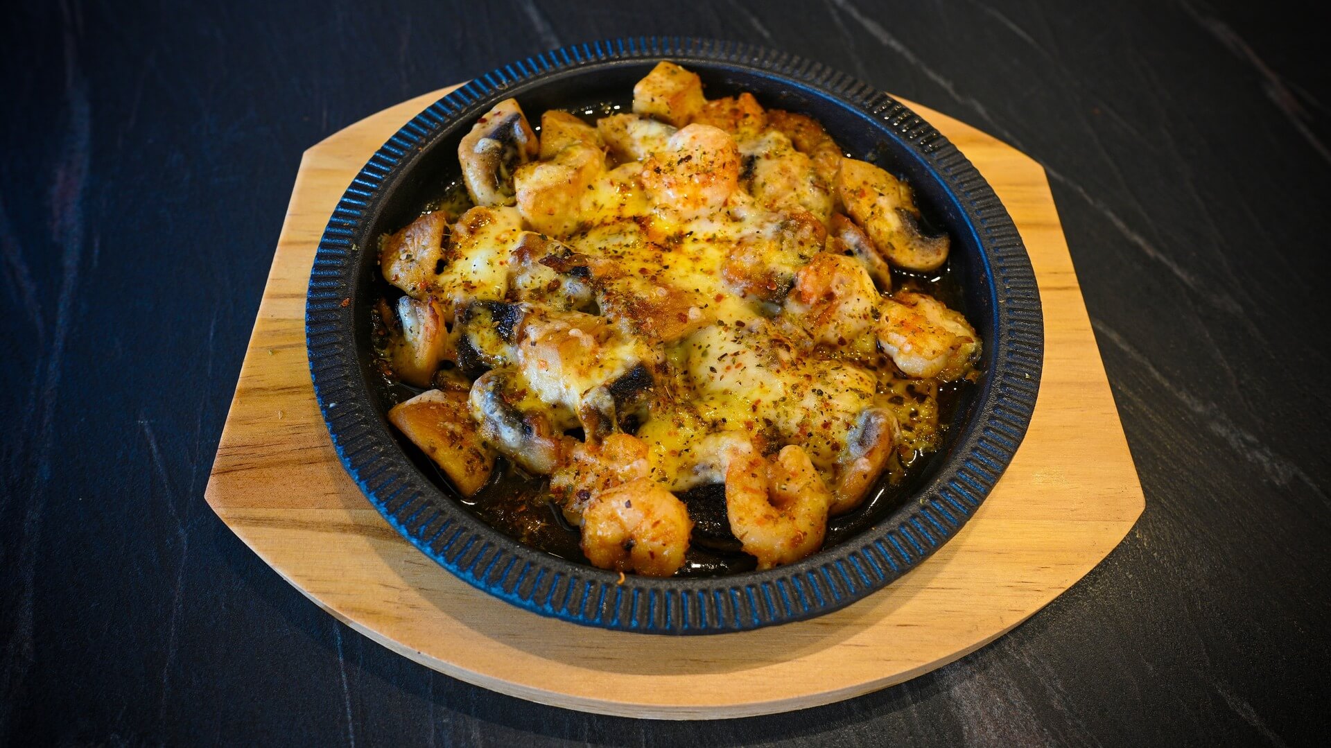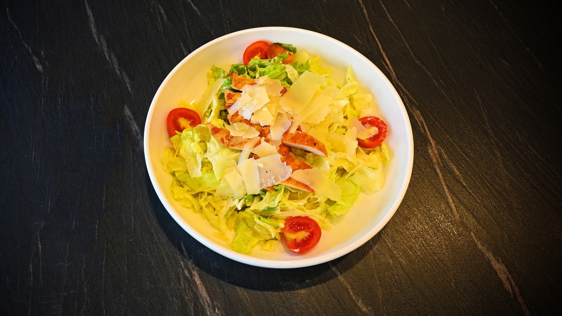 Homemade bun, crispy chicken, lettuce, ranch sauce (mayonnaise, yogurt), pickle, cheddar cheese, French fries